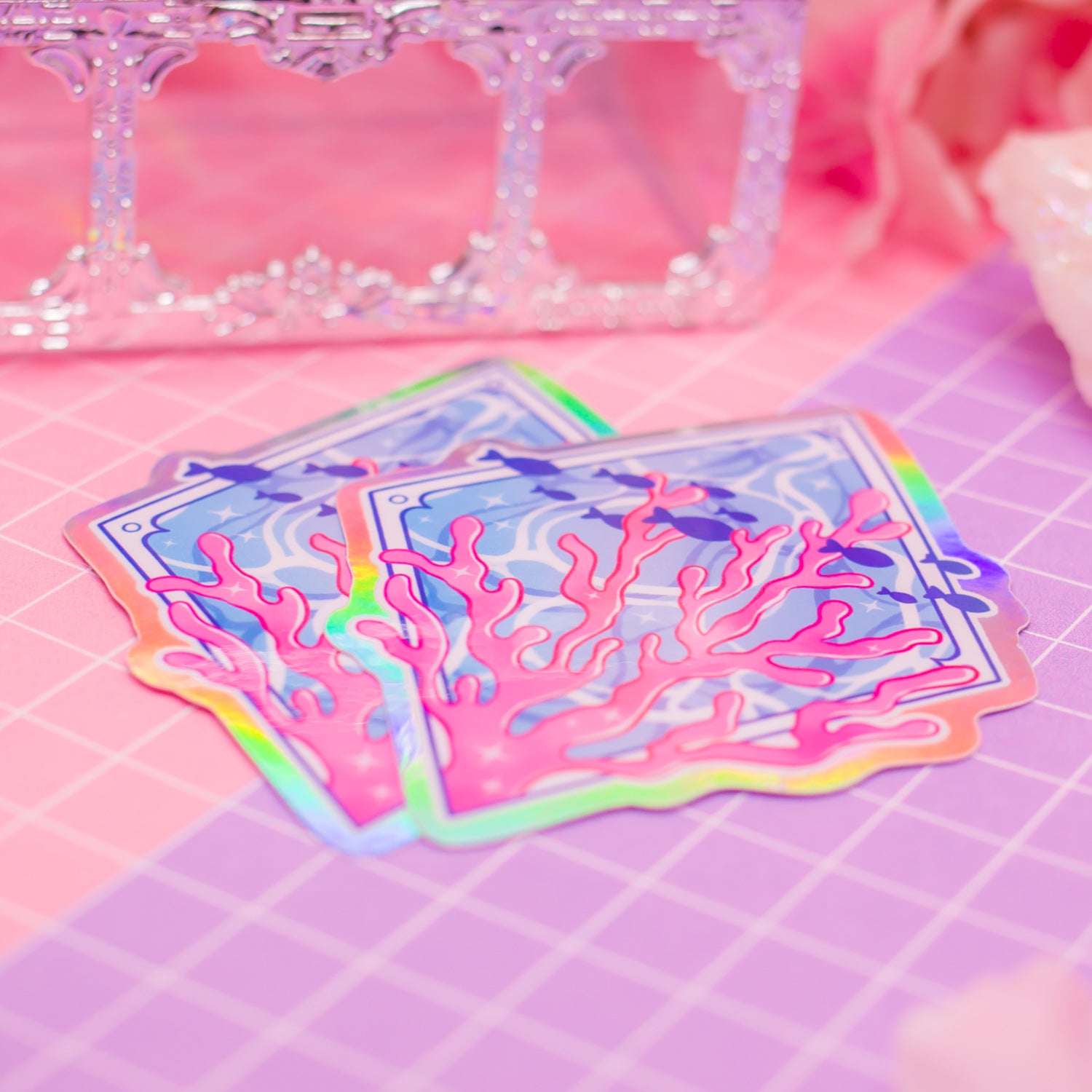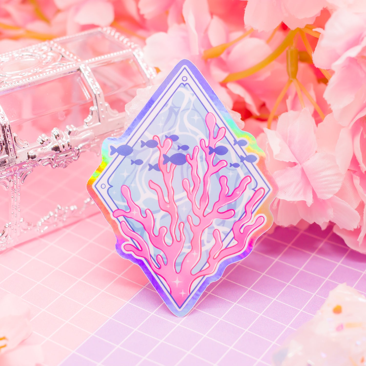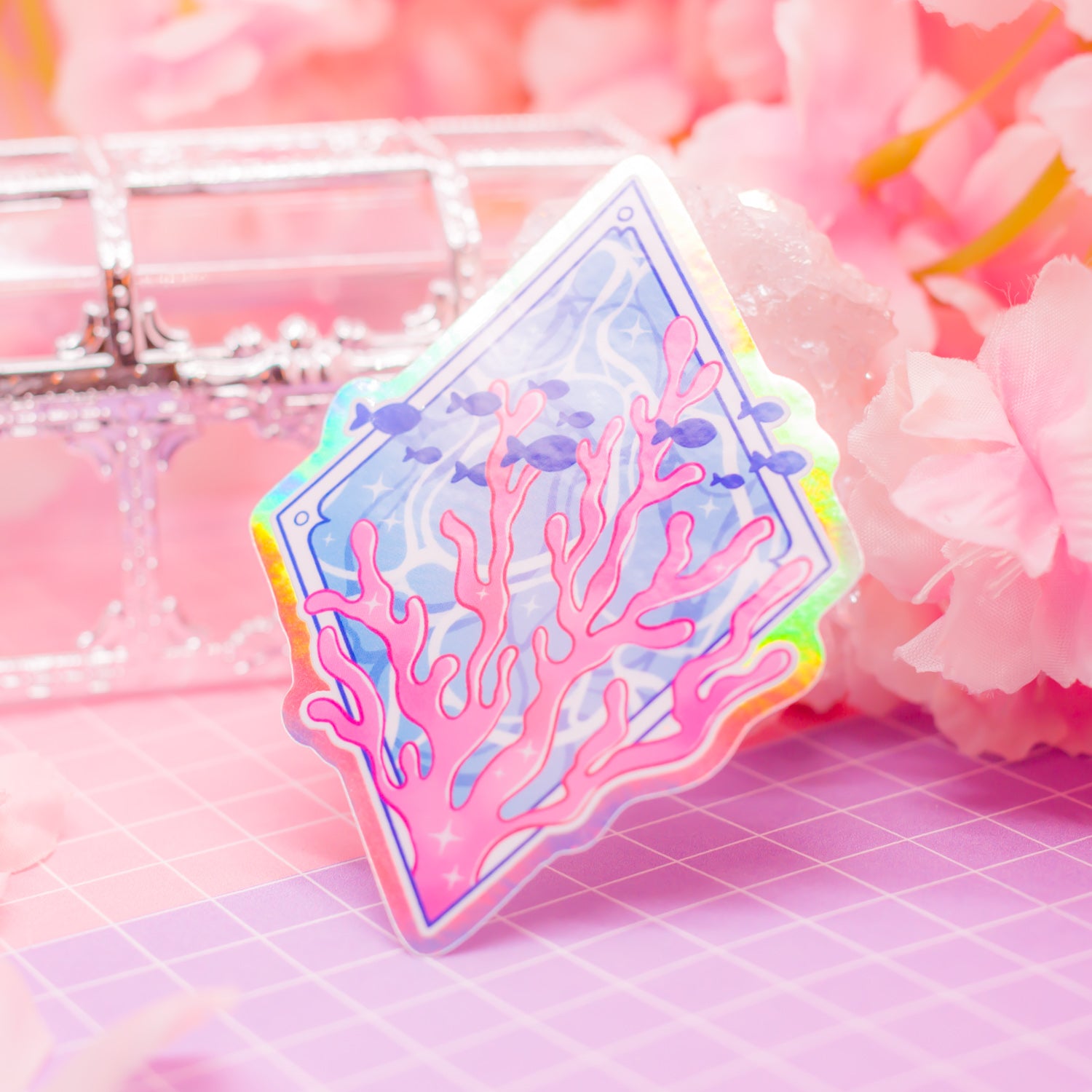 Ocean Coral Emblem - holographic vinyl sticker