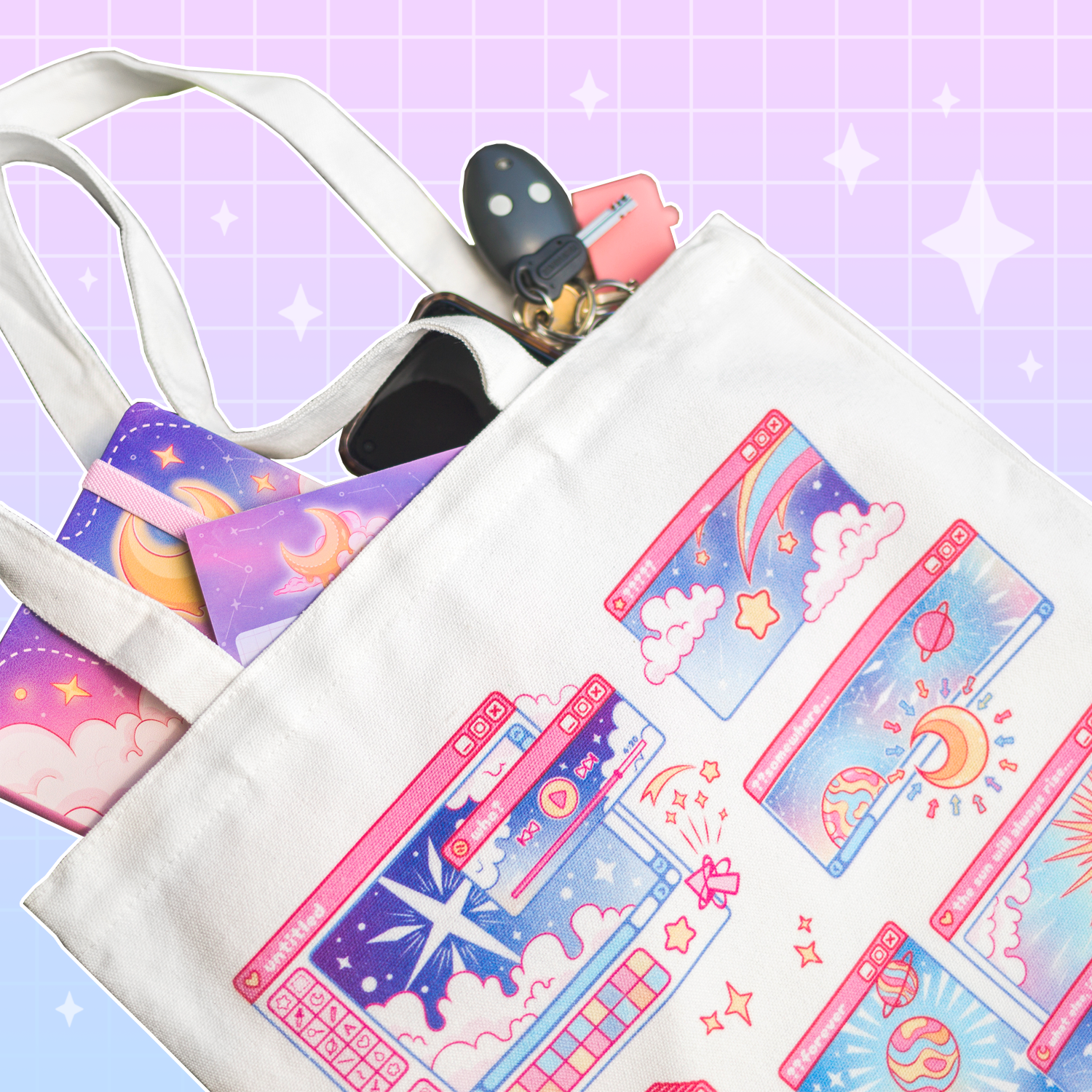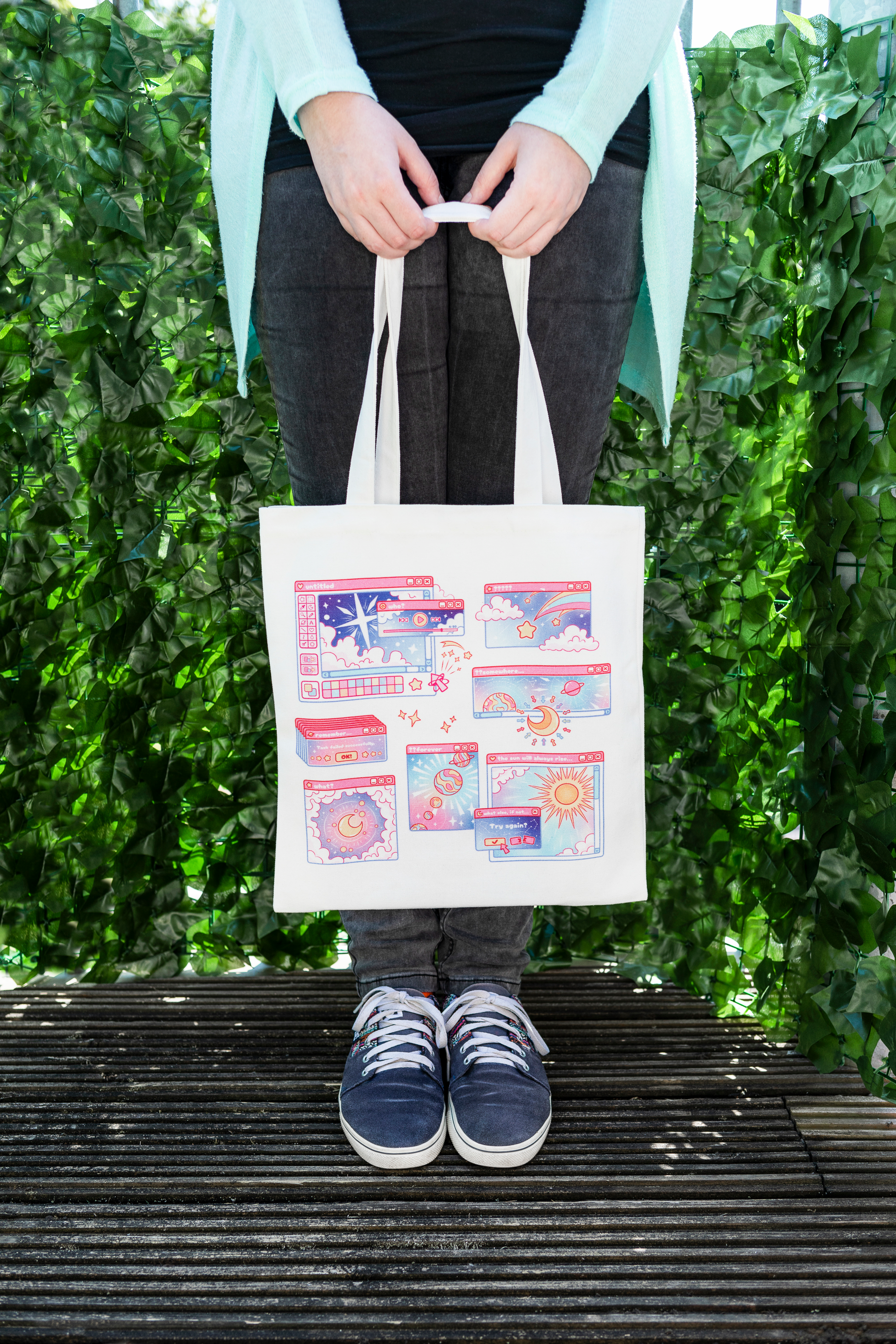 A colorful canvas tote bag, perfect for groceries, school supplies or just about anything that you can fit in there!