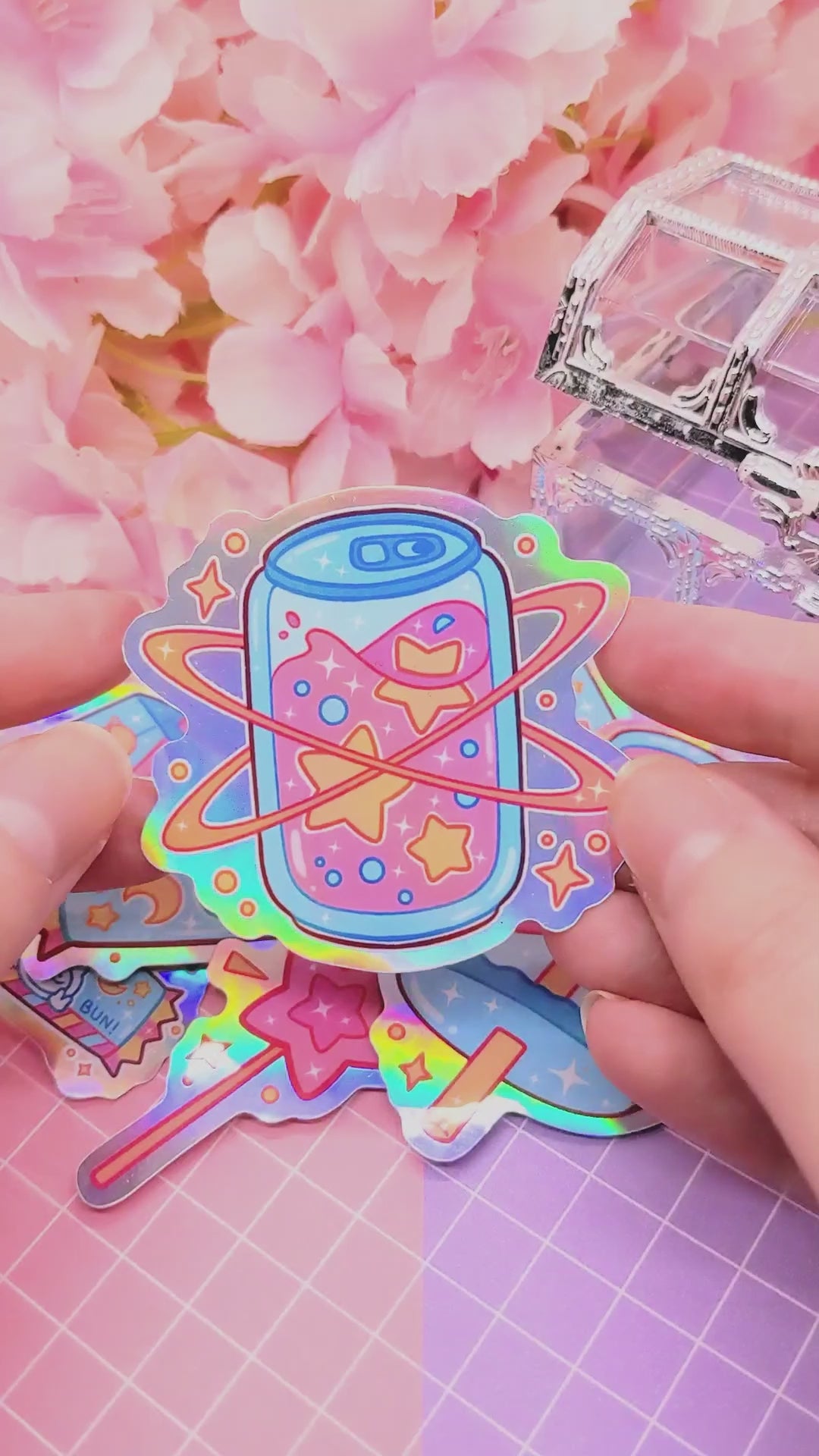 - please be aware that this listing is for ONE sticker, the one in the first picture! (The video is only to reference how the holographic effect looks, you will NOT be getting the other stickers unless you order them separately!)