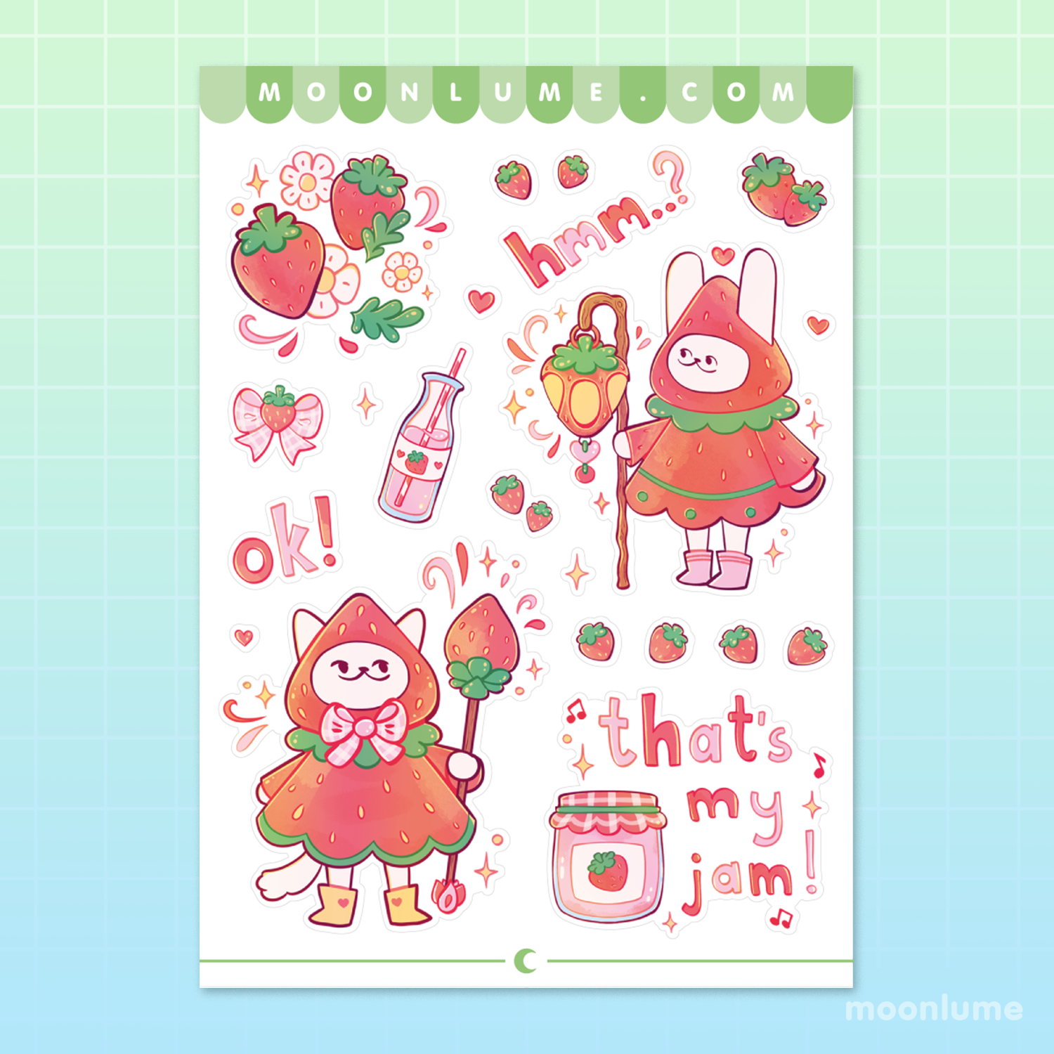 Magical Strawberry Friends - matte vinyl sticker sheet