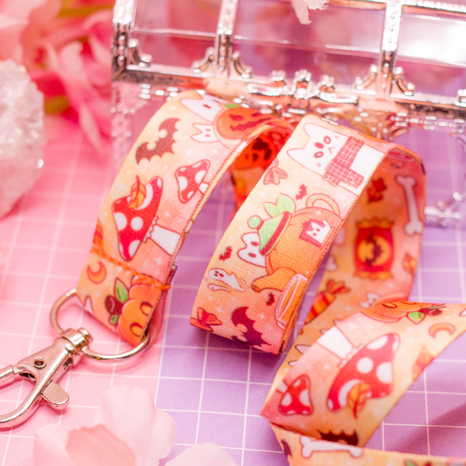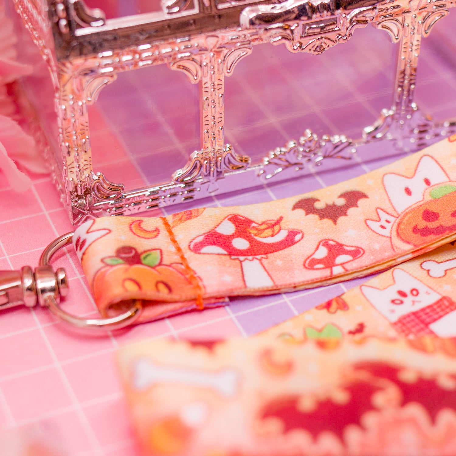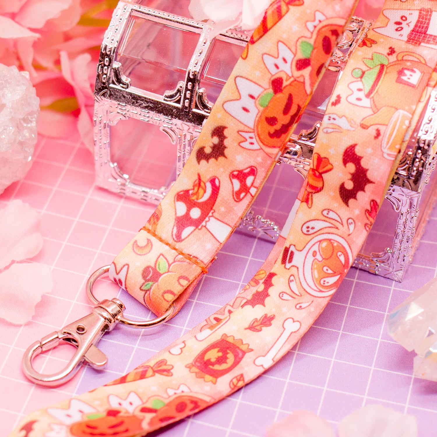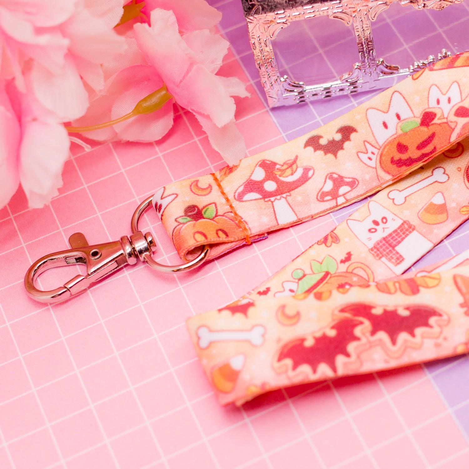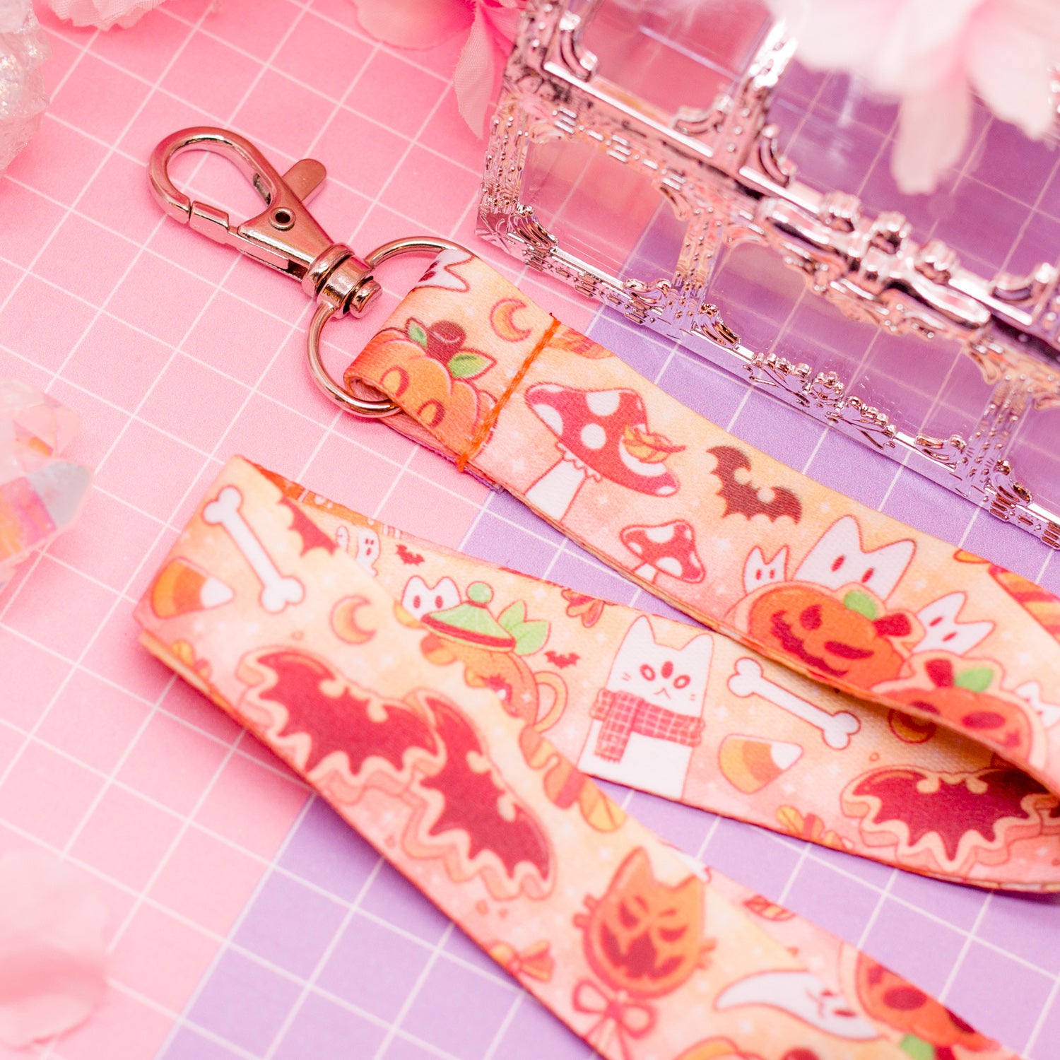 Halloween Cats and Snacks - lanyard with lobster clasp