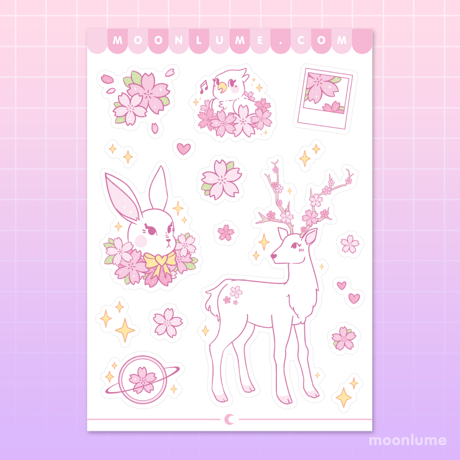 Sakura Season Animal Friends - matte vinyl sticker sheet
