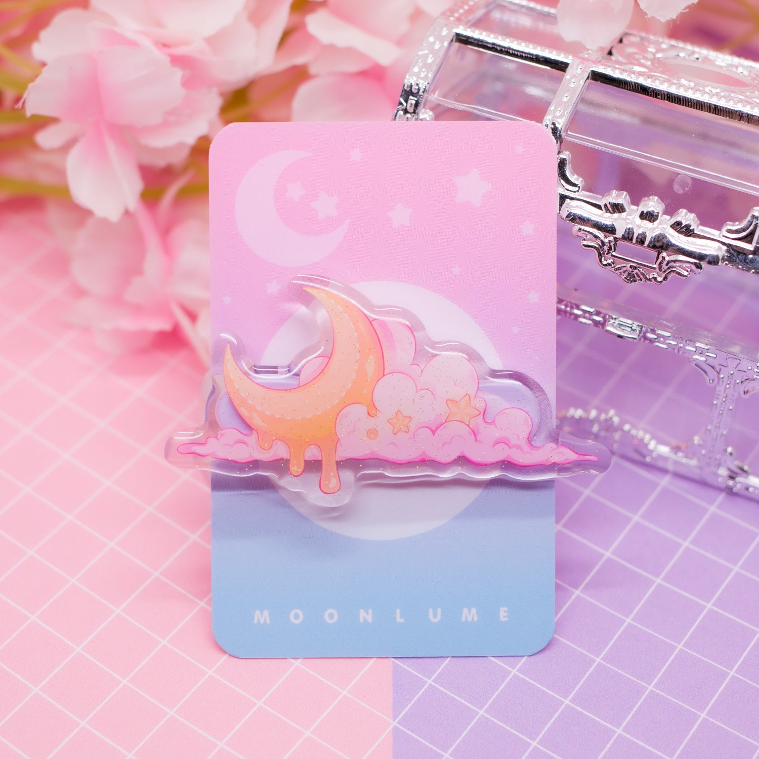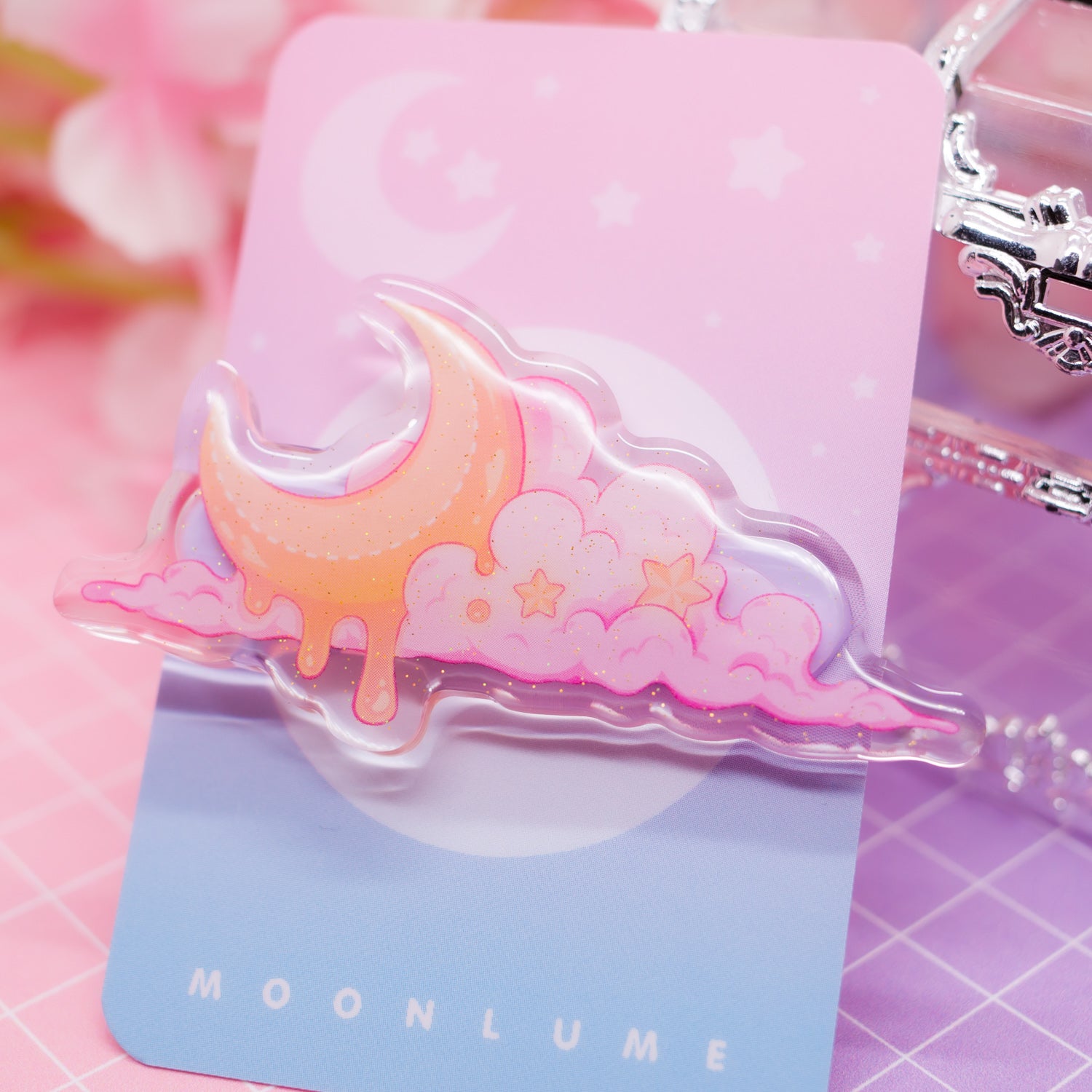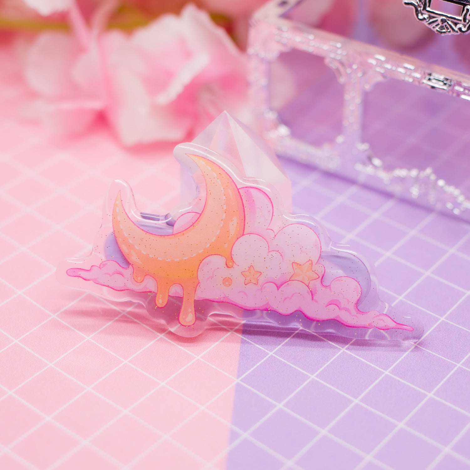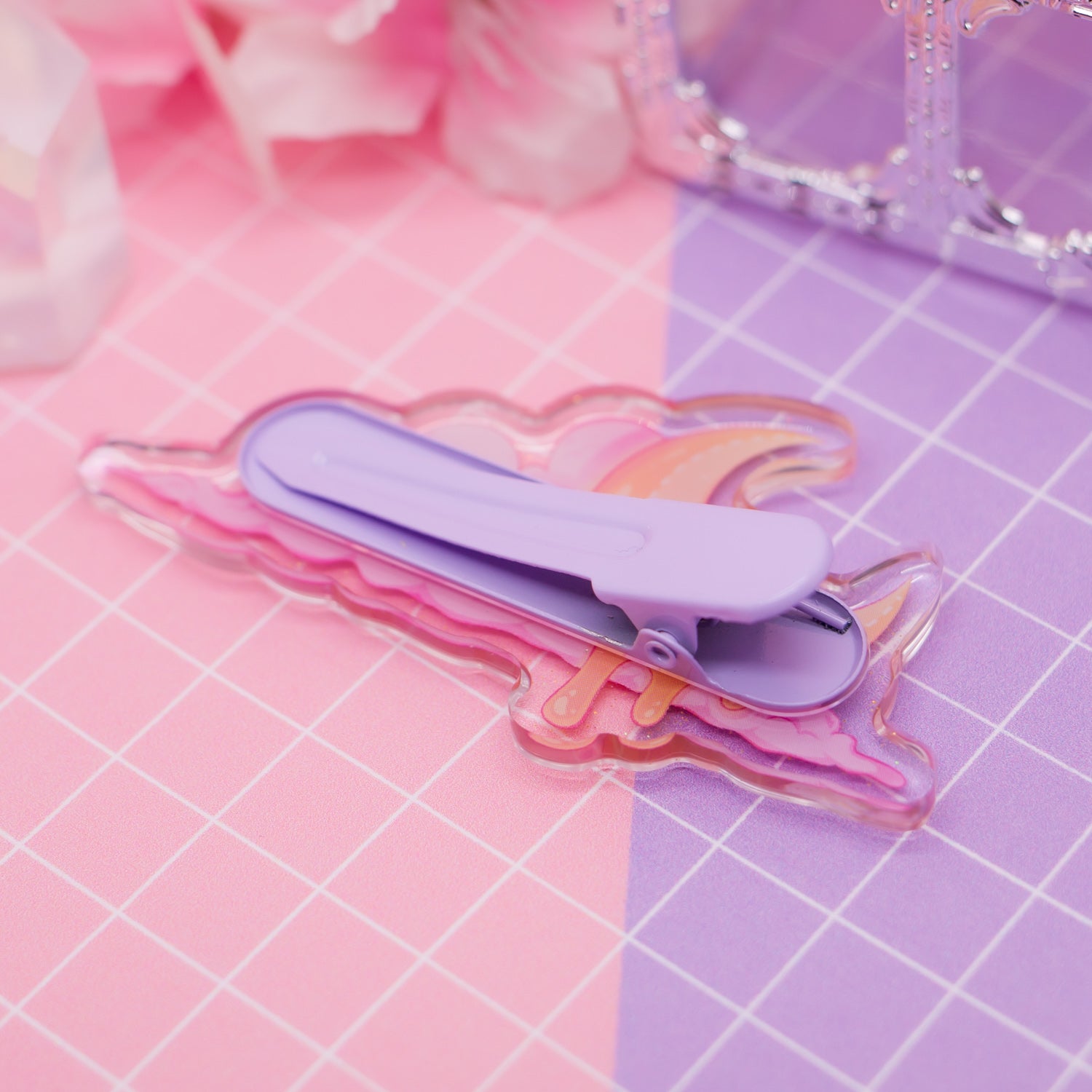 Melting Moon acrylic hair clip (with glitter!)