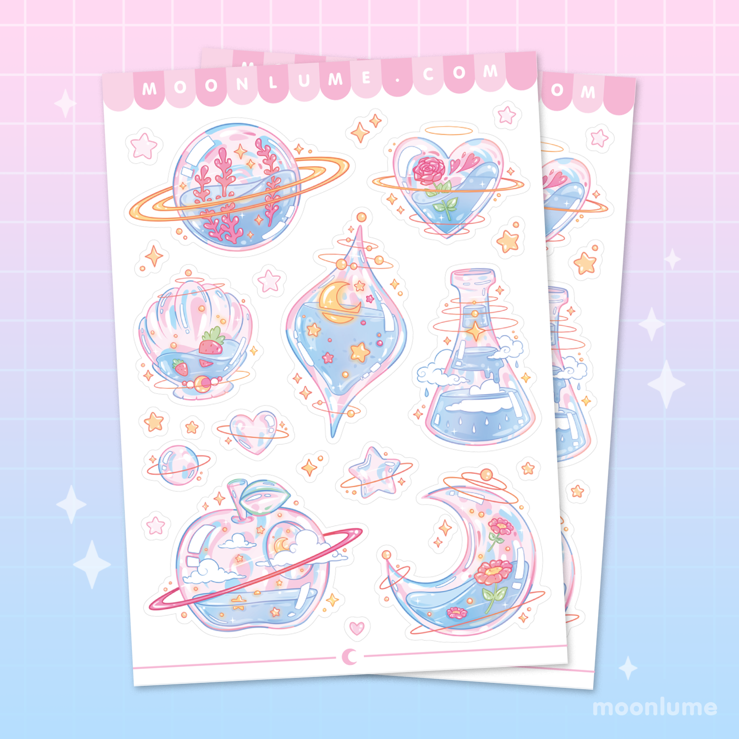 Aesthetic Glass Planets - matte vinyl sticker sheet