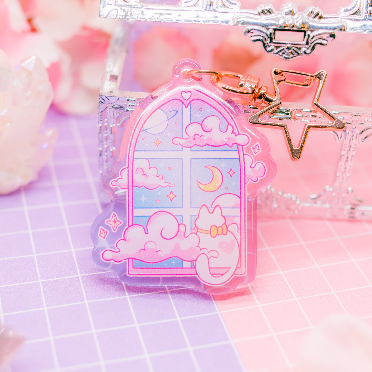 Pastel Dreams - Cat in the Window acrylic charm / keychain (gradient acrylic)