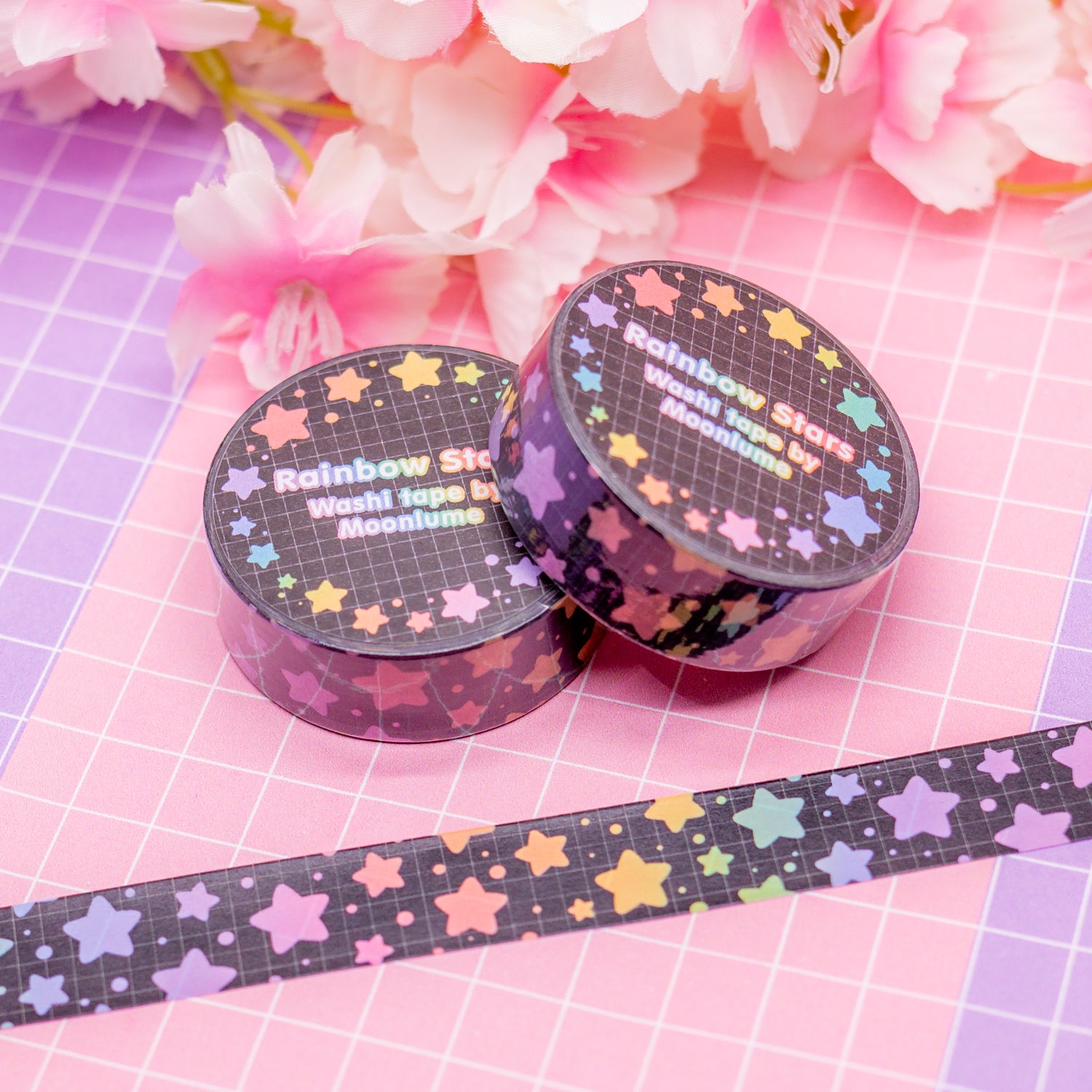 Dark version of my Rainbow Stars washi tape! If you would prefer a white background instead, check my shop for the other version!