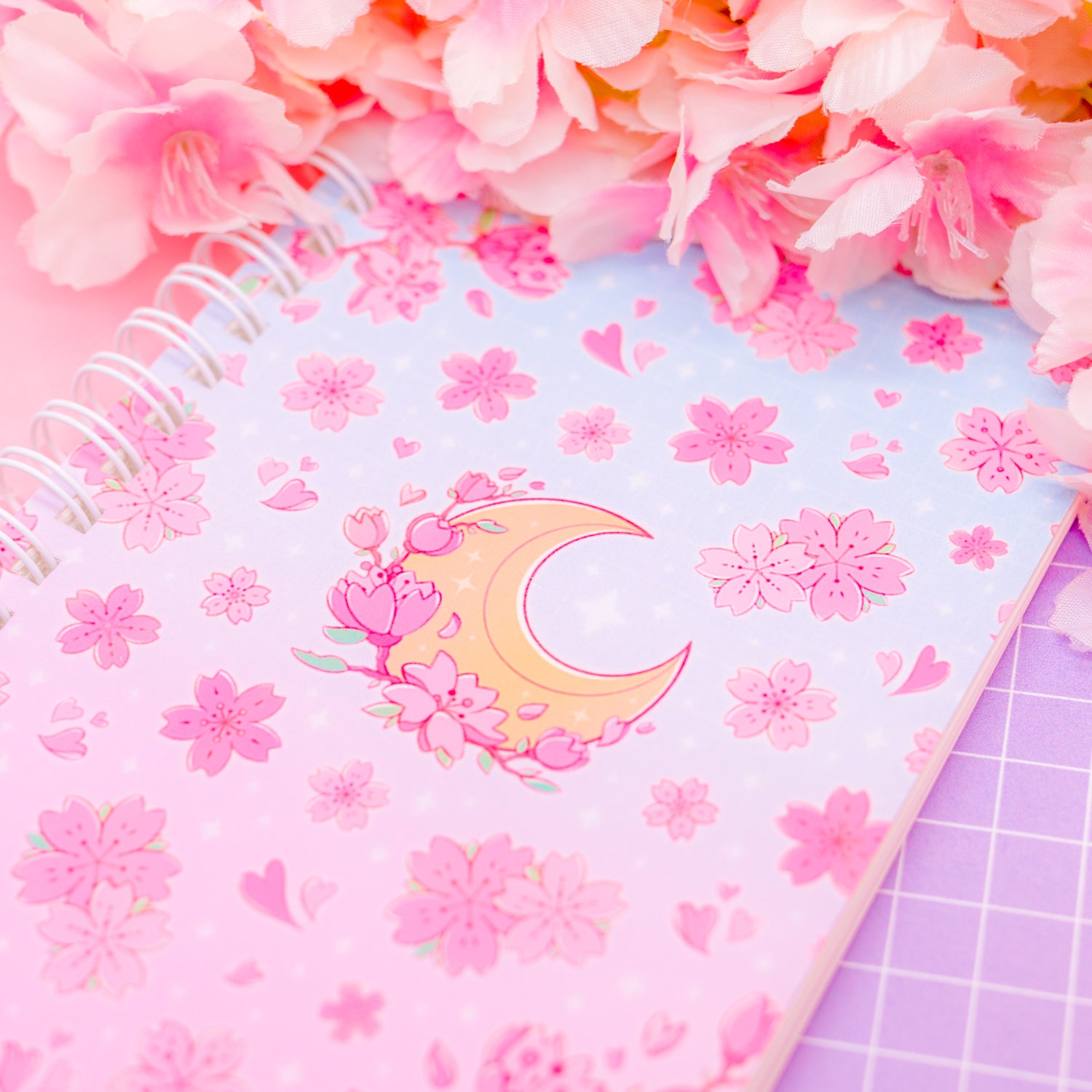 - front cover has a moon design, back cover has a wind chime design