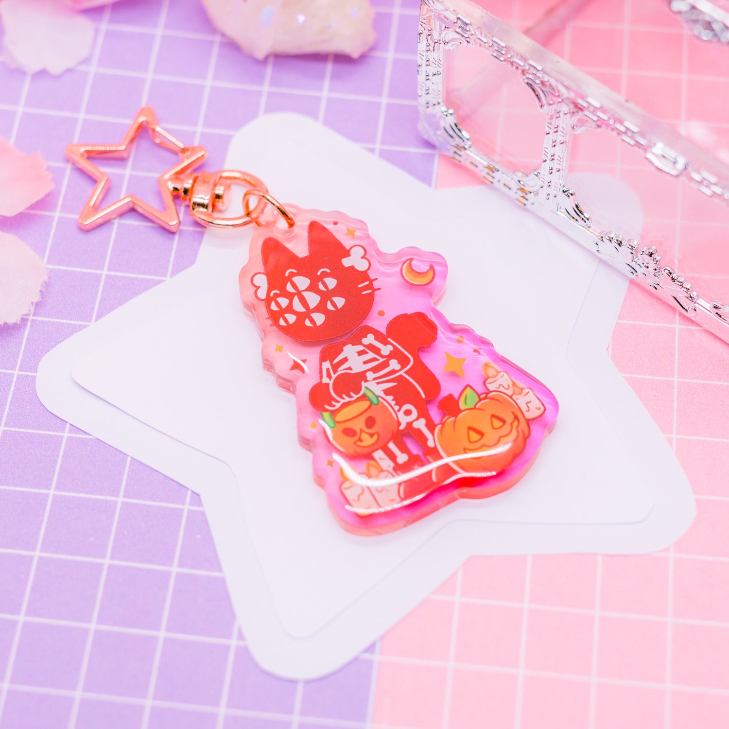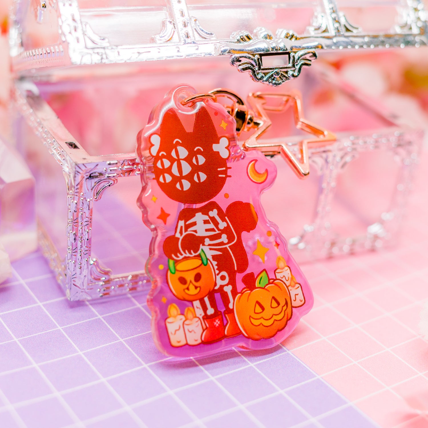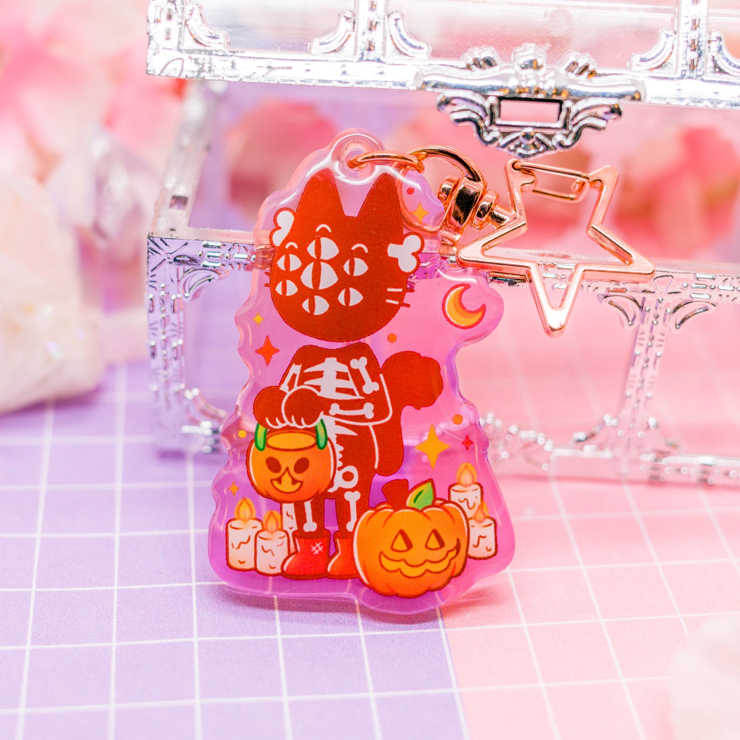 Spooky Town - Skeleton Cat acrylic charm / keychain (gradient acrylic)