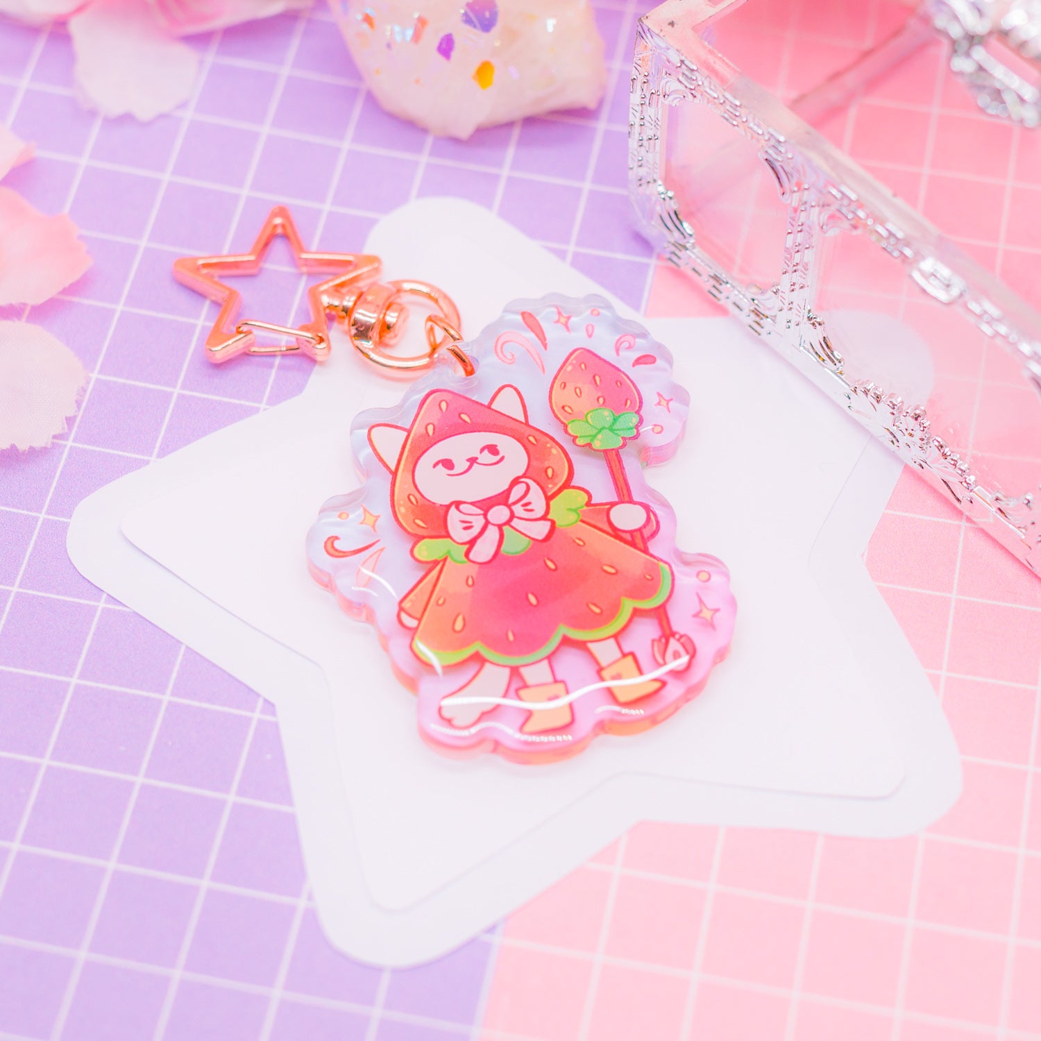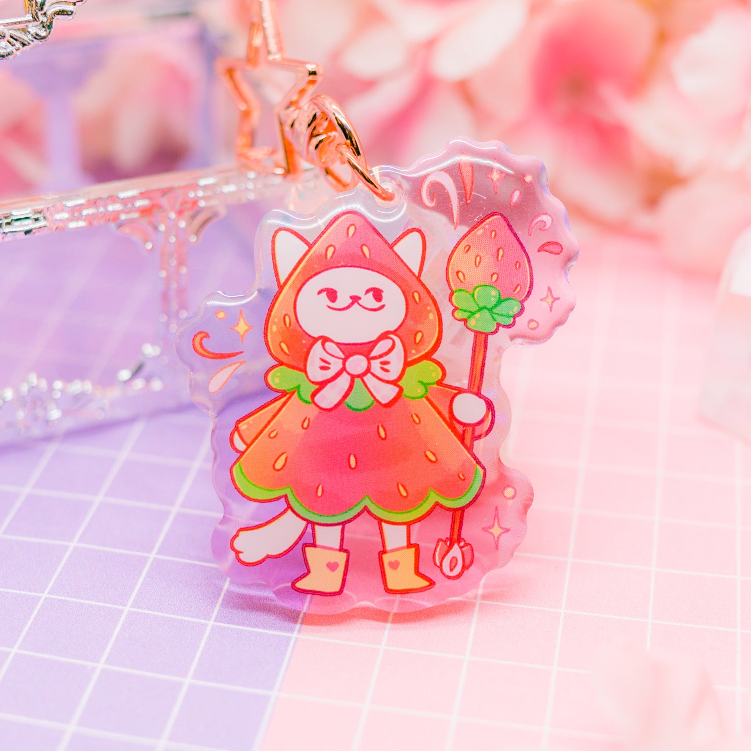 Strawberry Cat acrylic charm / keychain (gradient acrylic)