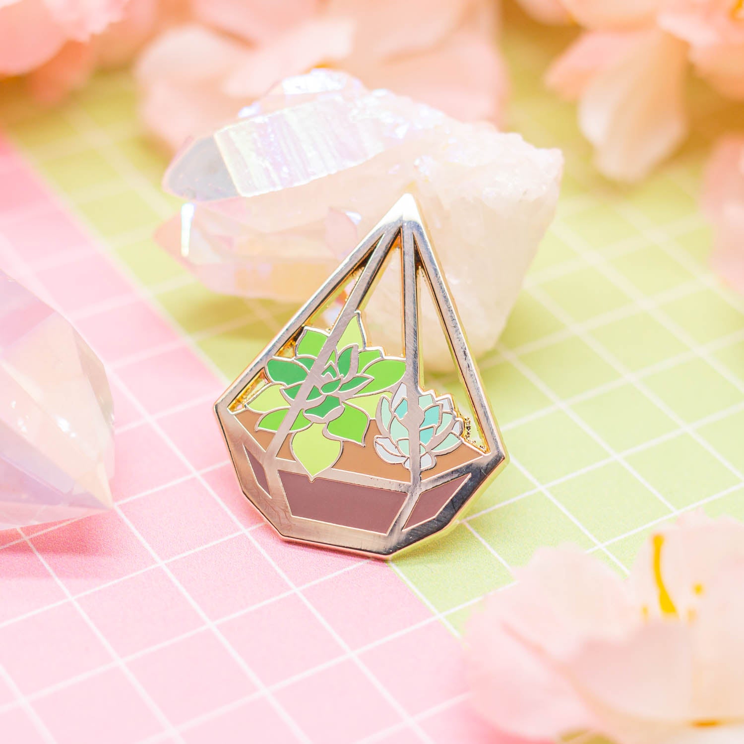 TERRA - Succulent terrarium enamel pin - triangle