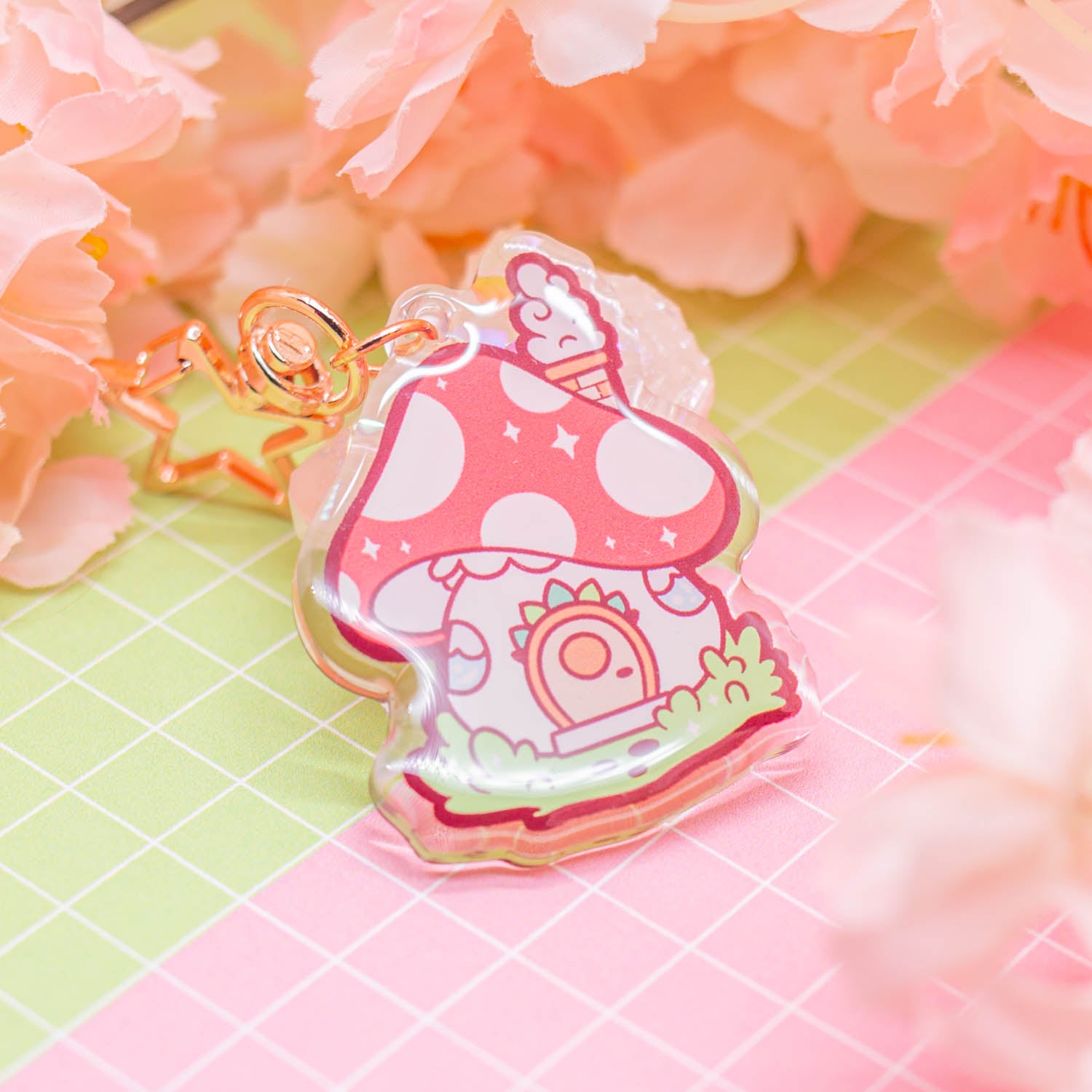 Tiny Forest - Mushroom House - acrylic charm / keychain